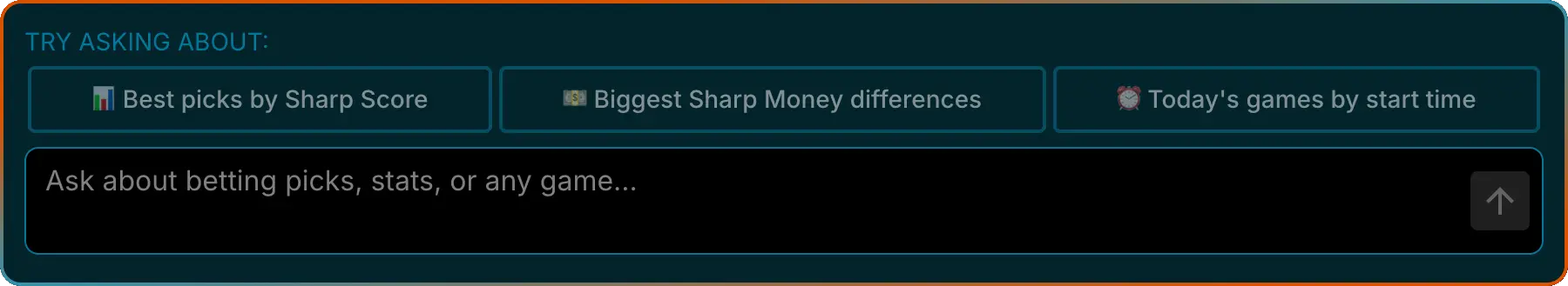 Sharp Chat AI™ is a cutting-edge AI powered sports betting assistant that deeply analyzes stats, trends, news, weather, picks and Sharp Scores to find hidden betting edges.